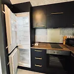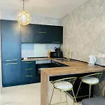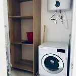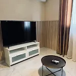 Der er værelser med en sofa, et fladskærms TV med satellitkanaler og klimaanlæg samt et køkken.